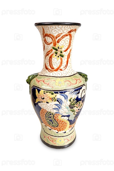 Китайская ваза в древних традициях выделялась на белом фоне. Элемент дизайна с обрезкой пути