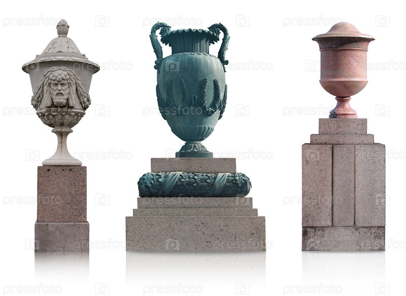 Набор старинных декоративных ваз, изолированных на белом фоне