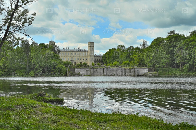Россия, Санкт-Петербург, Гатчина, Дворец и терраса-пирс на Белом озере летом