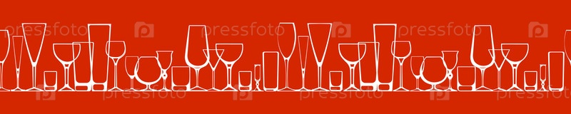 Векторная бесшовная обертка или подарочная лента (лента) с различными стаканами для алкогольных напитков