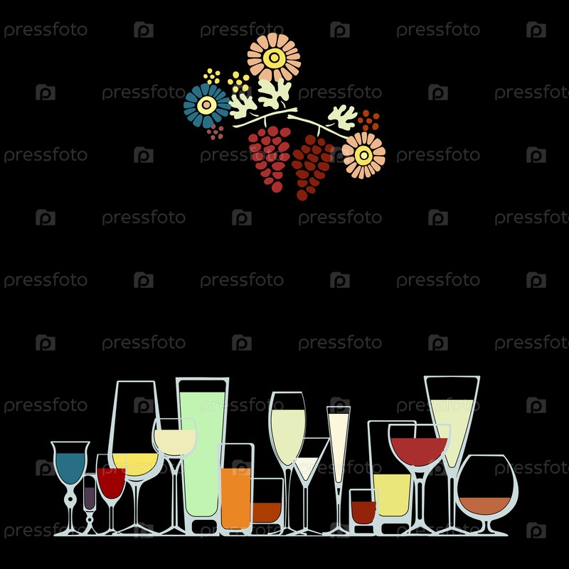 Векторный шаблон для алкогольного меню с бокалами для напитков