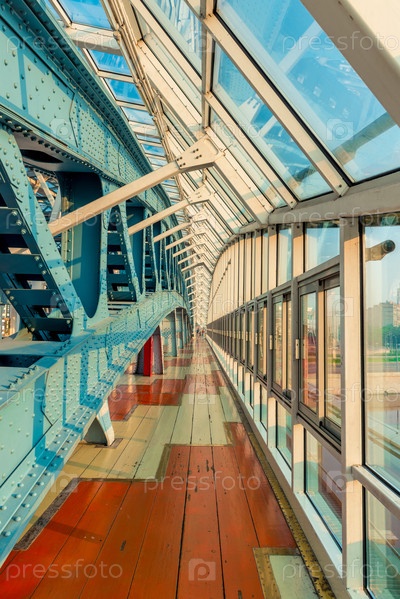 Пешеходный мост внутри городских частей и зданий