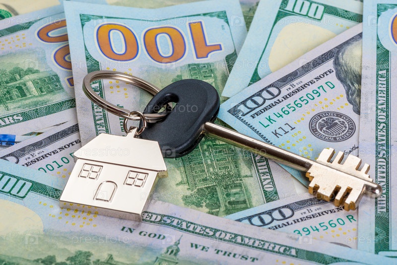 Концептуальная фотография денег и недвижимости ключ от нового дома на груде американских долларов закрывается