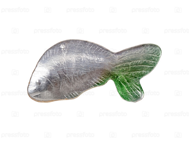 Картонная рождественская игрушка (как серебряная рыба) изолирована на белом фоне. Элемент дизайна с обрезкой пути