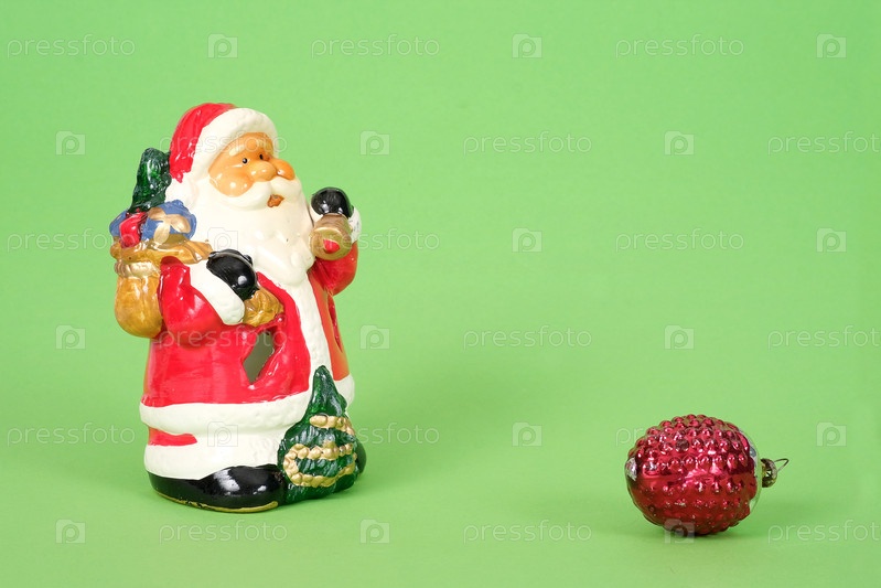 Керамический Санта Клаус изолирован на зеленом фоне