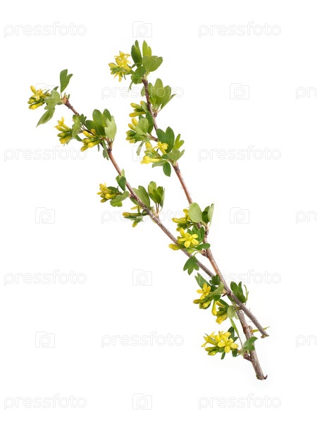 Золотая ветвь смородины с желтыми цветами, выделенными на белом фоне, вырез готов