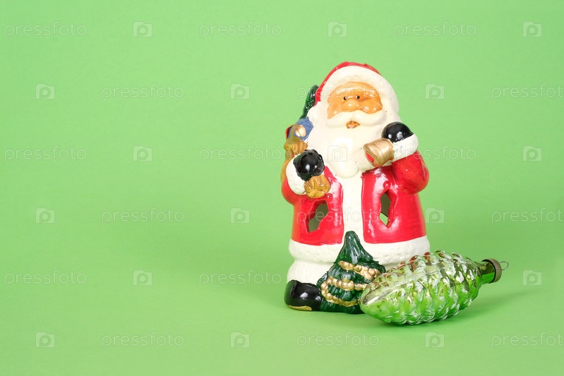 Керамический Санта Клаус изолирован на зеленом фоне