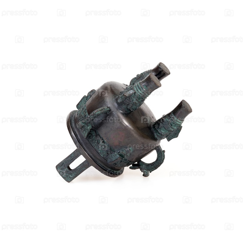 Традиционный китайский сосуд Ding для приготовления пищи или отопления домов изолирован на белом фоне