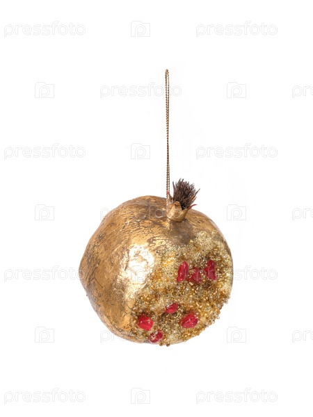 Золотые гранатовые украшения для рождественской елки изолированы на белом фоне