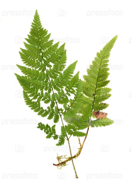 Ветви зеленого папоротника изолированы на белом фоне, вырез готов