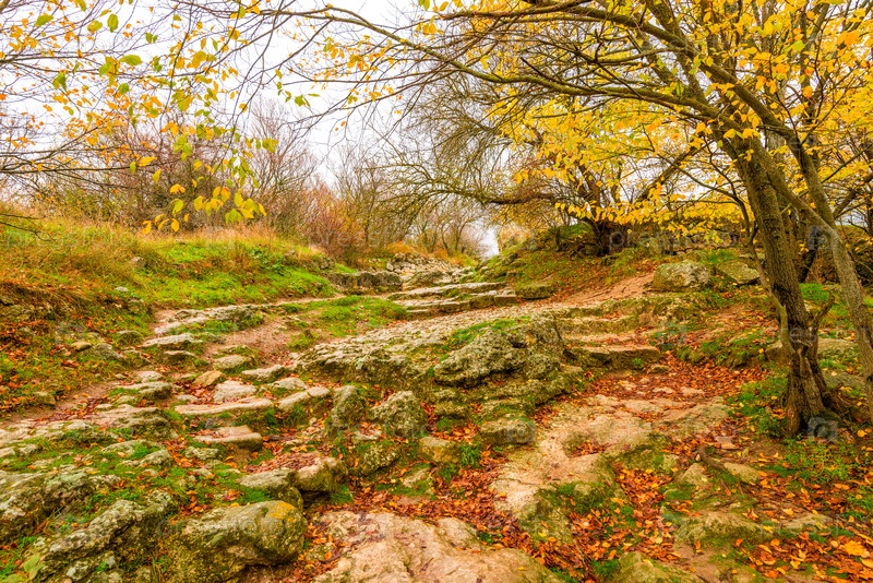 Каменная дорожка, ведущая в пещерный город Чуфут-Кале в Крыму