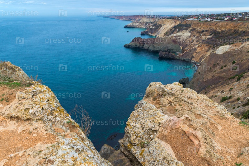 Прекрасный вид сверху на живописный берег полуострова Крым
