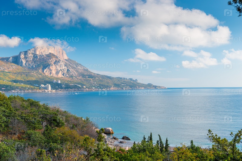 Фото гор и морской живописный пейзаж в осенний солнечный день, природа Крымского полуострова