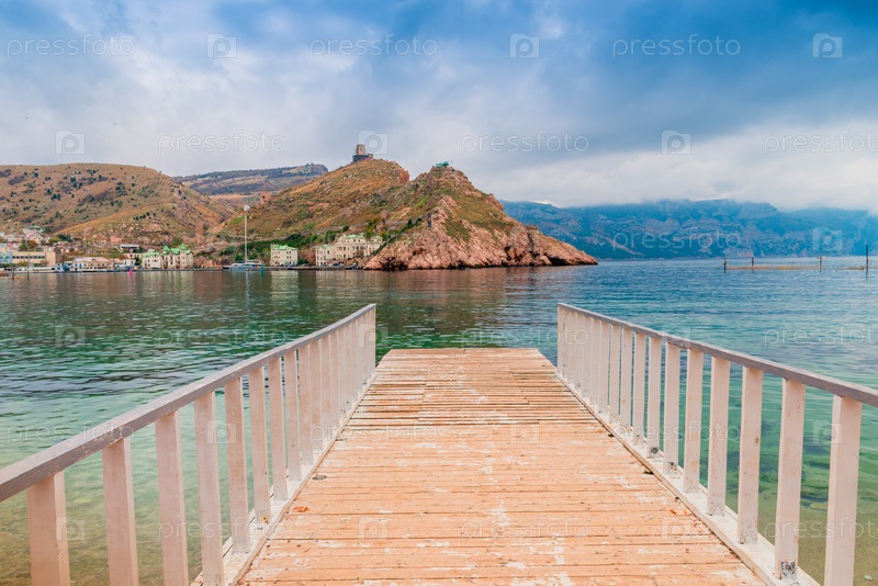 Красивый вид на Балаклаву в облачный день, Крымский полуостров, Россия