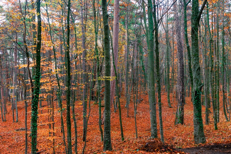 Скрытый смешанный лес, осенний пейзаж в пасмурный день