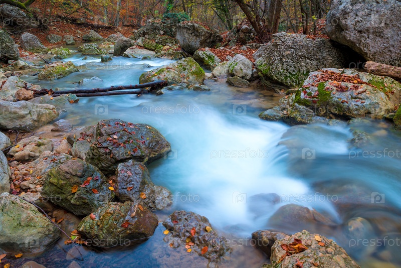 Горная быстрая река с холодной водой, красивые большие камни, удивительный пейзаж