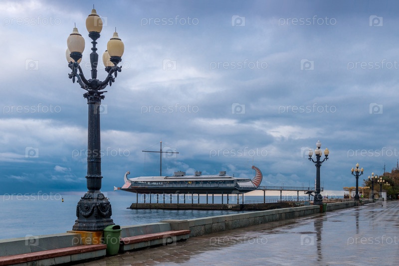 Прогулка по набережной курорта Ялта осенью днем, Крым, Россия