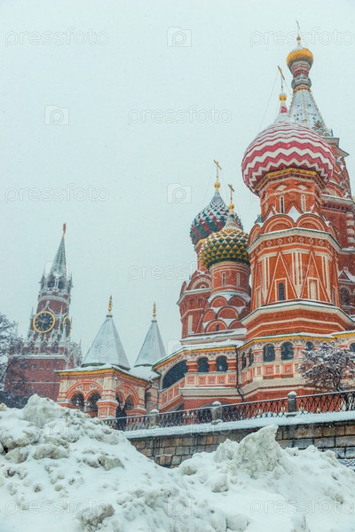 Зимний вид на достопримечательность собора Святого Василия на Красной площади в Москве, Россия