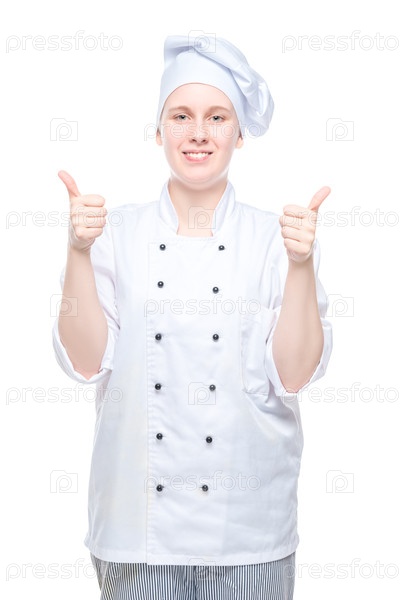 Шеф-повар показывает жестовые руки, стреляющие на белом фоне