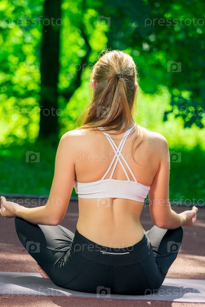 Простые асаны йоги - тренер в лотосном положении сзади