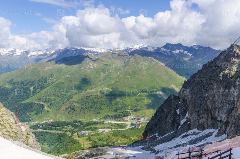 Снежные вершины и зеленые долины в Альпах