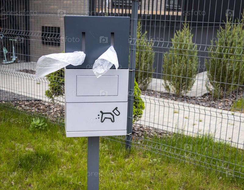 Закройте снимок коробки с одноразовыми пластиковыми пакетами, используемыми для очистки экскрементов домашних животных в парке. городской