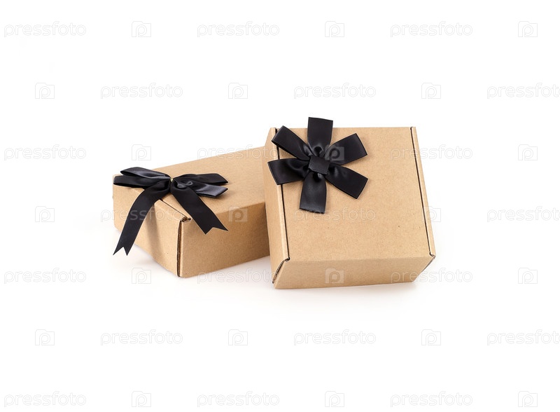 Две коробки с черным носом и лентой, изолированные на белом фоне