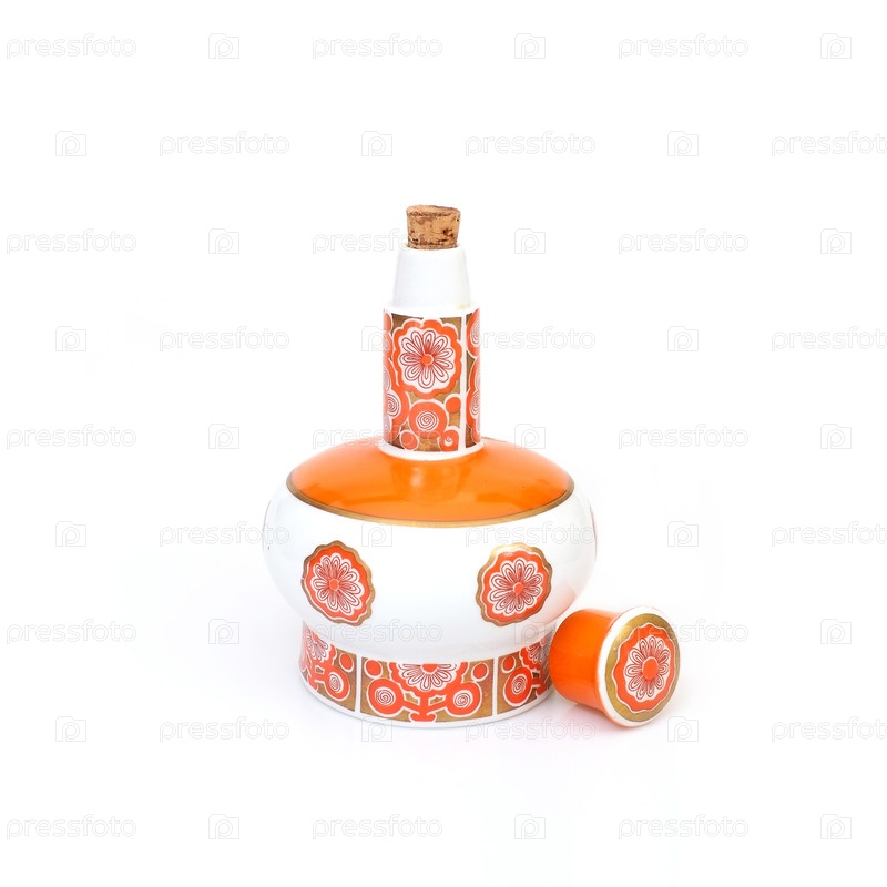 Декоративная фарфоровая бутылка (ваза) изолирована на белом фоне