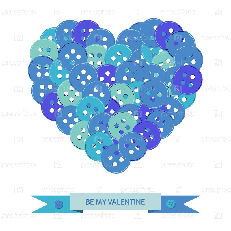 Плакат ко Дню святого Валентина с сердцем из разноцветных кнопок и лентой с надписью