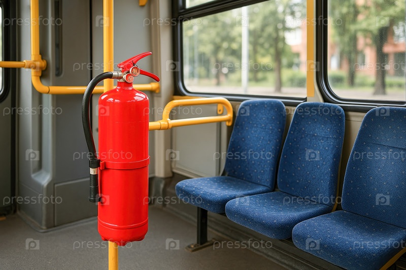 Огнетушитель в салоне городского автобуса