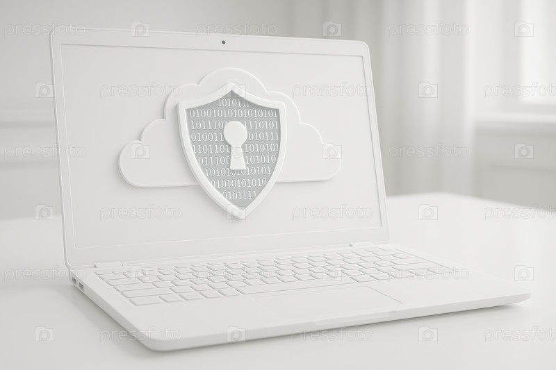 Цифровой щит кибер безопасности в облачном хранилище на ноутбуке