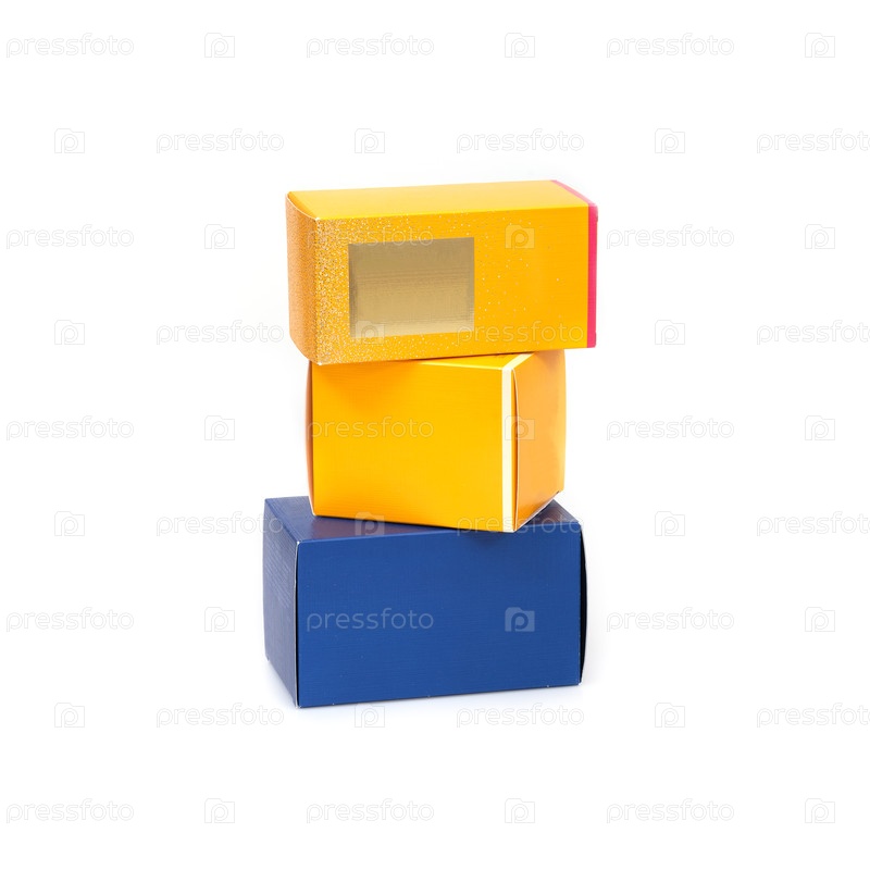 Желтые и синие упаковочные коробки выделены на белом фоне