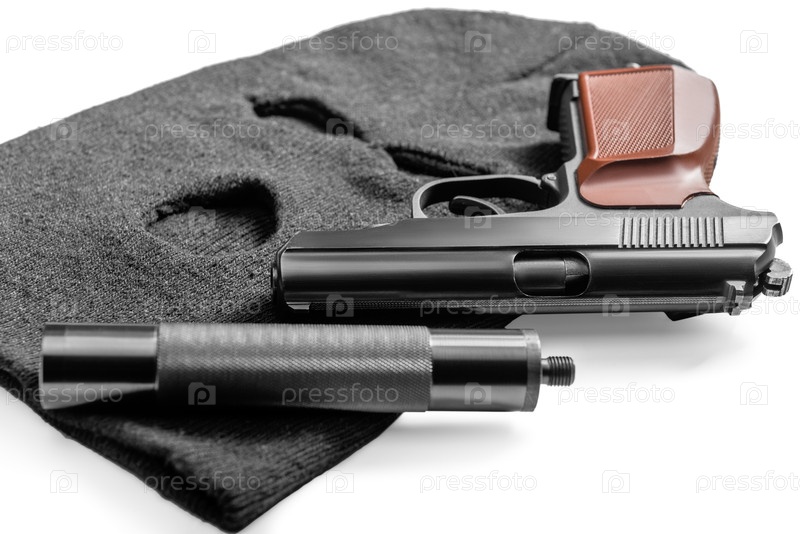Преступный концепт объектов гангстера - балаклава и крупный план оружия