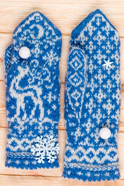 Синие рукавицы ручной работы с рисунком оленя - это теплые и мягкие крупным планом