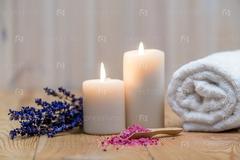 Лаванда, горящие свечи и морская соль для санаторно-курортного лечения и объектов релаксации закрываются
