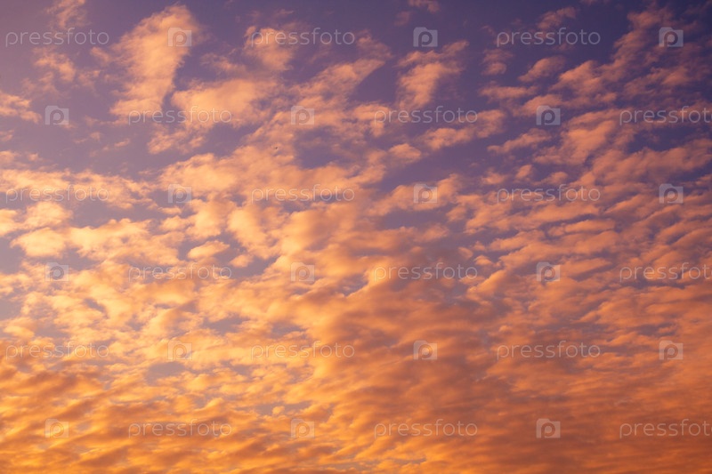 Оранжевые перьевые облака на закате фиолетового неба (фон)