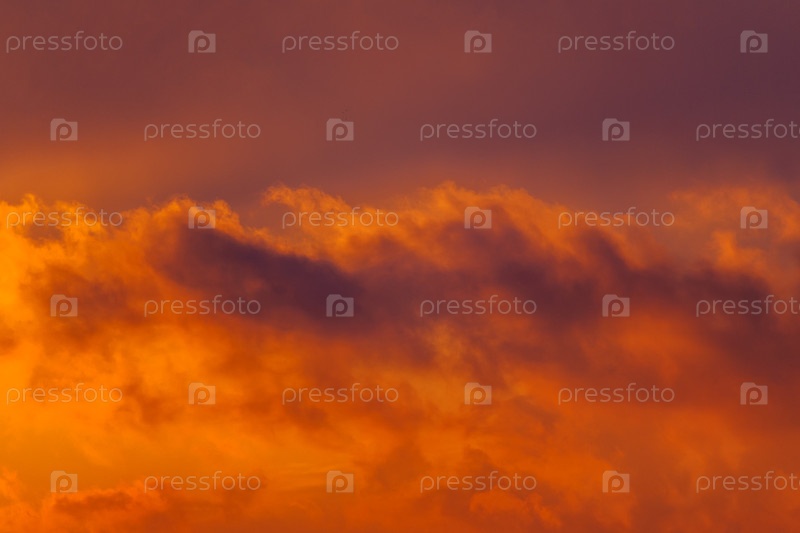 Прекрасный вид на темные облака в оранжевом небе, освещенные восходящим солнцем