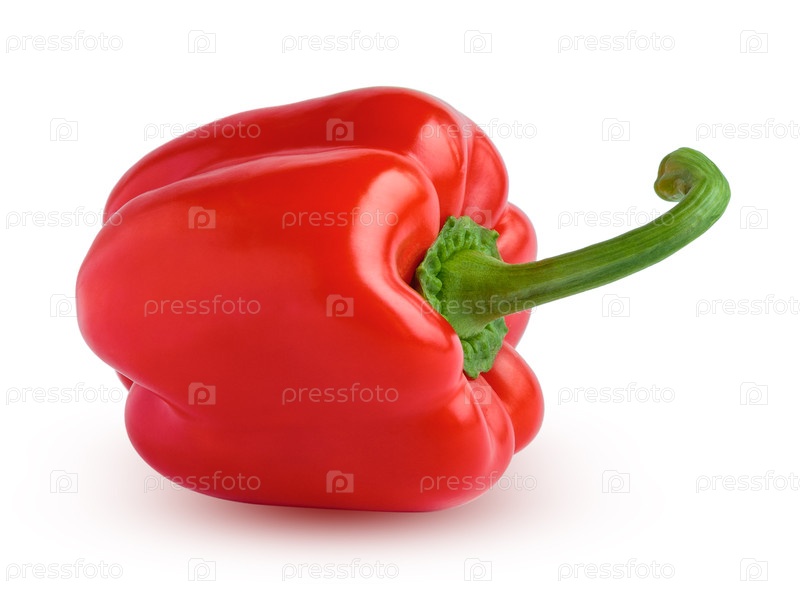 Красный колокольный перец с тенью, изолированной на белом фоне