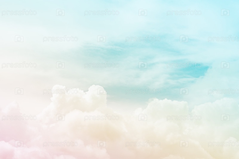 Абстрактный вид на мягкие кучевые пушистые облака в фантастическом светлом небе как фон (тонированный)