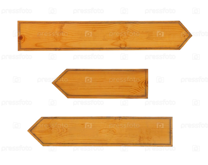 Набор из трех пустых деревянных указателей: длинный, средний, короткий, изолированный на белом фоне