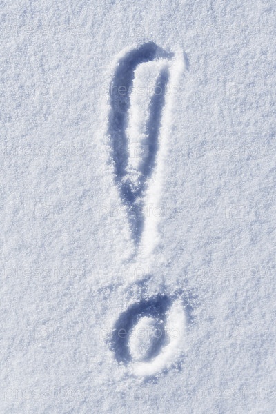Восклицательный знак, написанный на поверхности снега (фон)