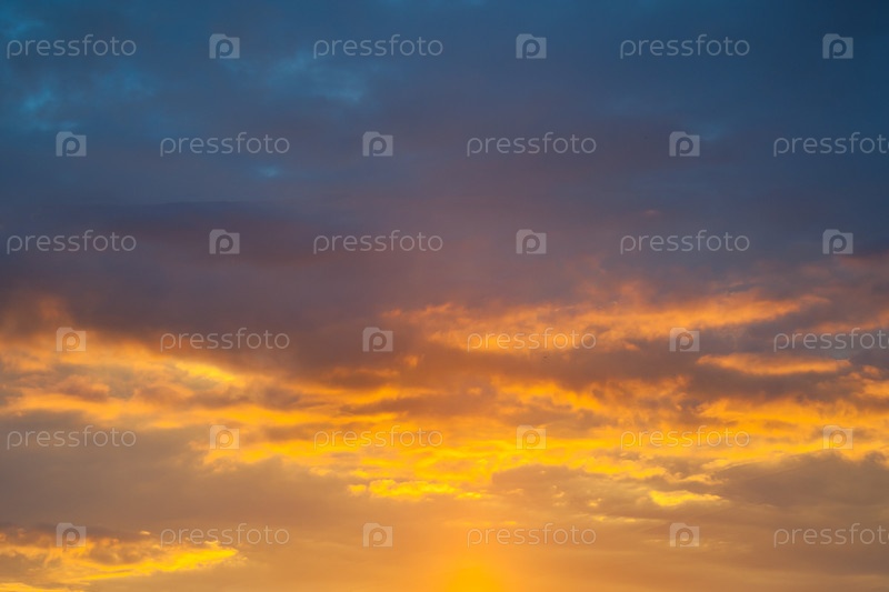 Драматический вид на оранжевые облака в закатном небе