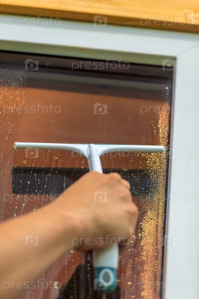 Стеклянный чистящий инструмент, мужской крупный план