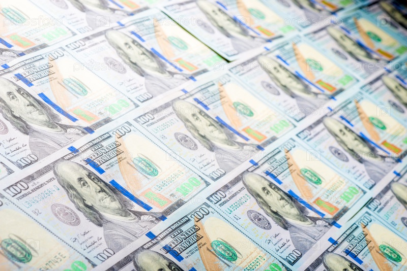 Фон 100 долларовых купюр крупным планом в ряд обоев
