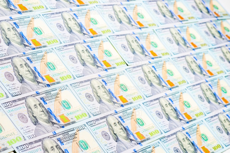 Макросъемка 100 долларовых купюр на фоне ряда
