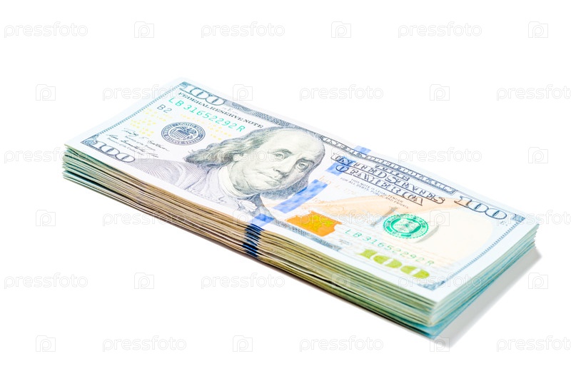 Стопка 100-долларовых купюр на белом фоне изолирована
