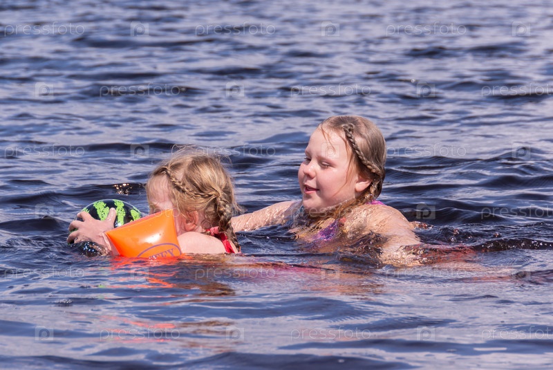 Девочки веселятся в воде в жаркий солнечный летний день
