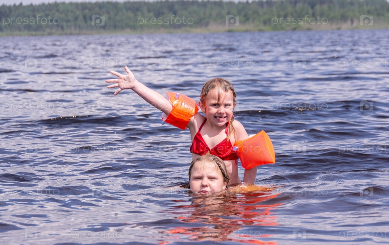 Девочки веселятся в воде в жаркий солнечный летний день