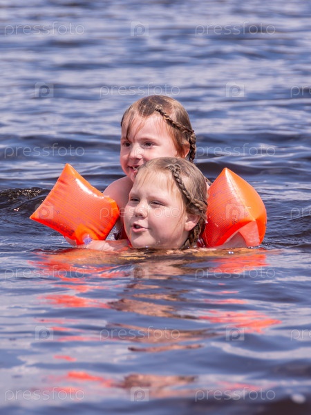 Девочки веселятся в воде в жаркий солнечный летний день
