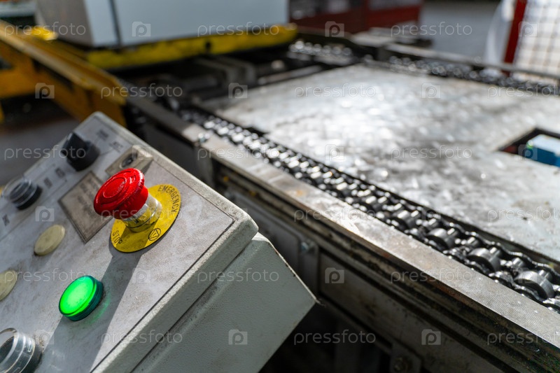 Аварийная остановка установлена на конвейере в заводе по производству холодильников